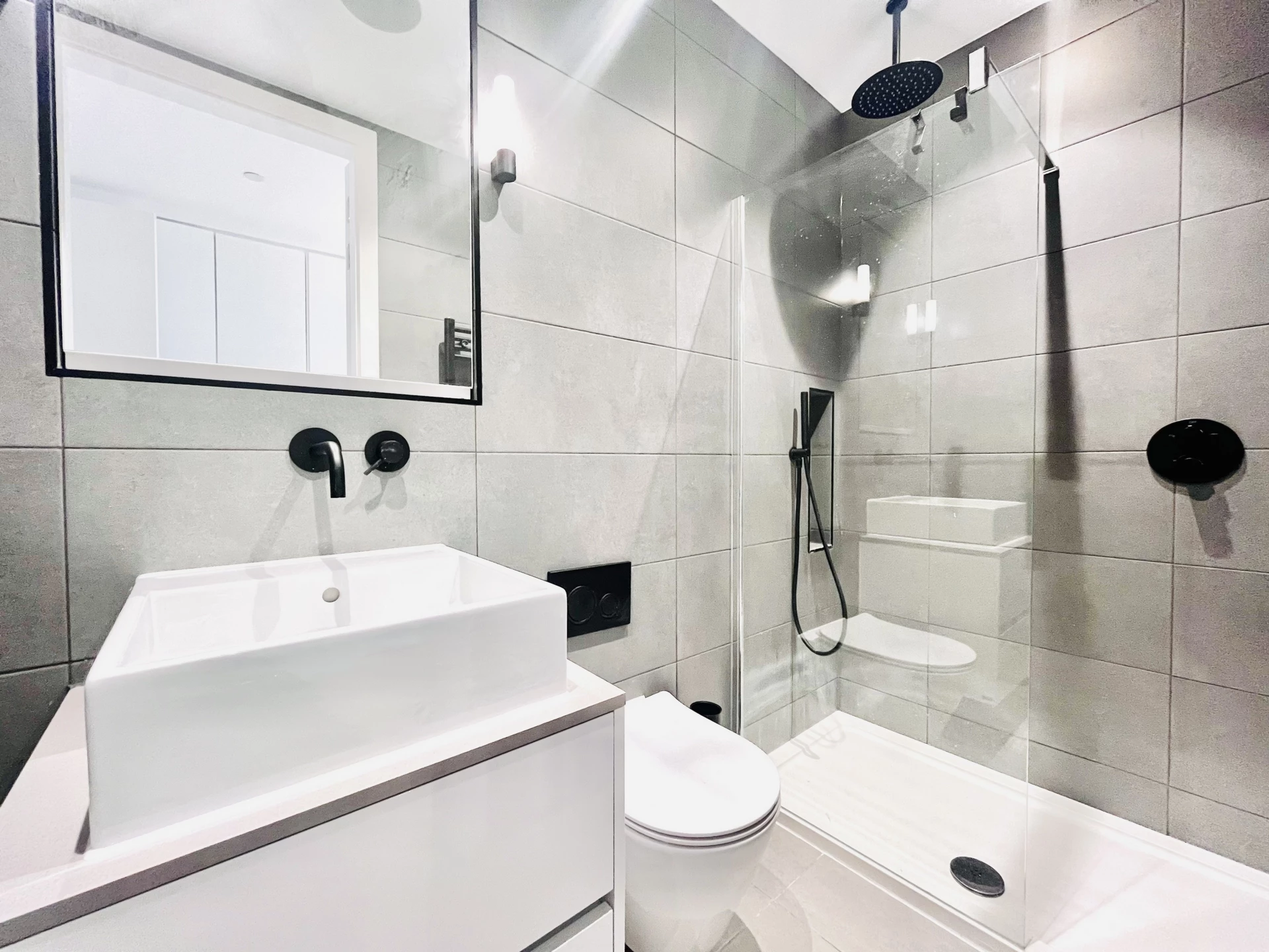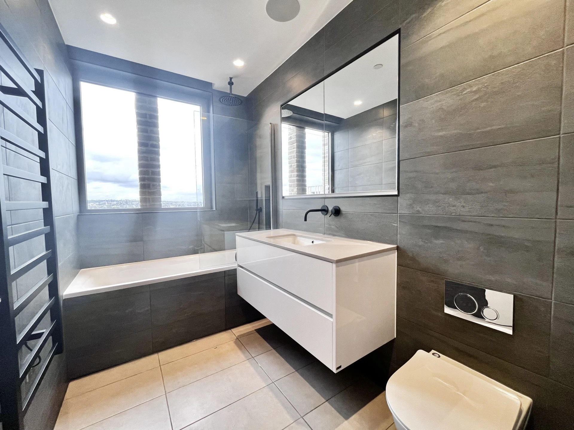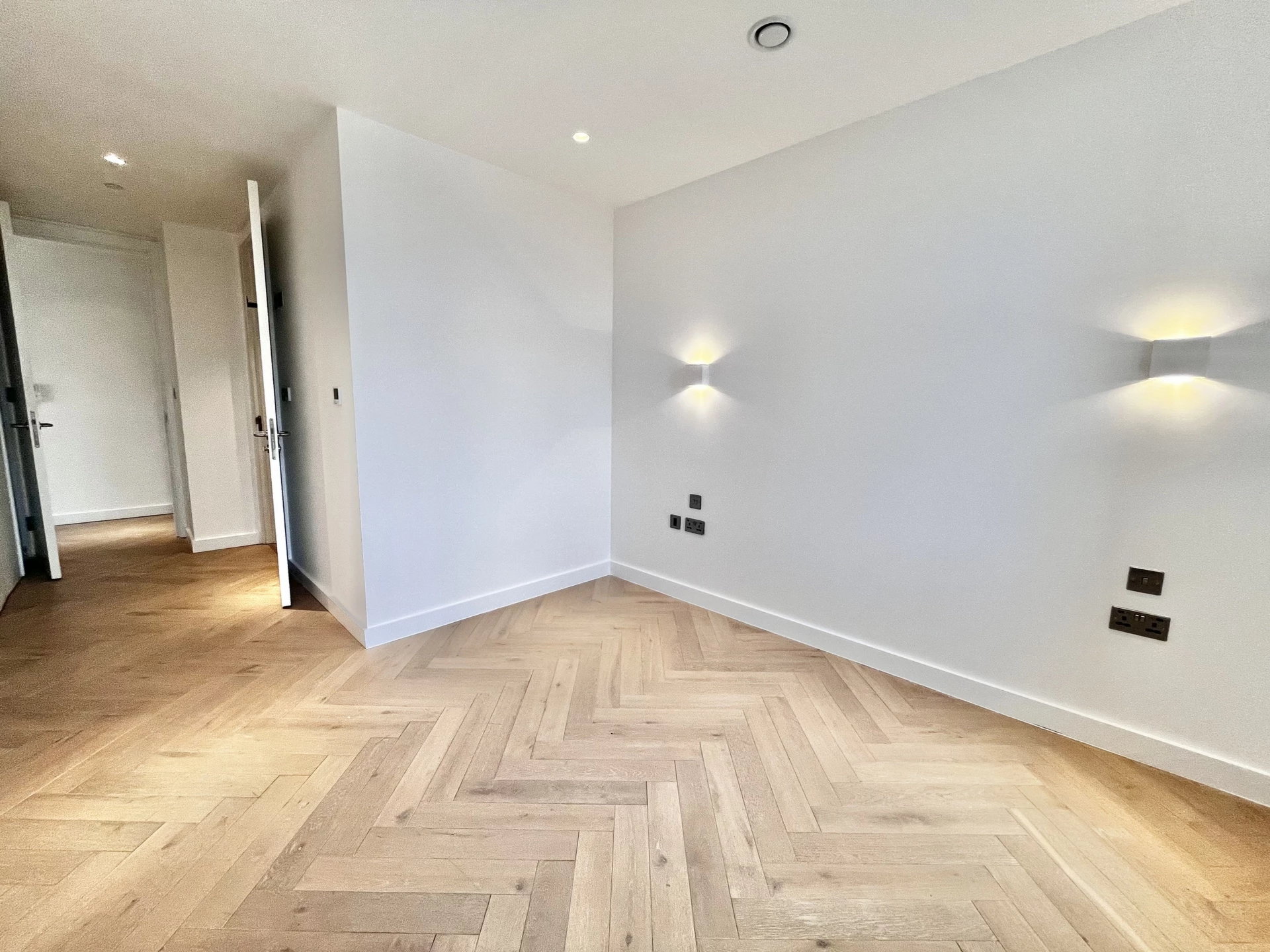 This property comprises of 3 Large Bedrooms featuring large floor-to-ceiling Double-Glazed Windows offering ample natural lighting to pour though throughout the day. There is an open-plan reception with a seperate area for Fully Fitted Kitchen with Integrated Bosch Appliances (Fridge-Freezer, Dish-Washer, Ceramic Induction Cooker and Microwave). There are 2 lavishly designed bathrooms with Heated Black Towel Radiator, Black Satin finish stainless steel wall mounted taps, white matte ceramic toilet and sink to ensuite, underhung sink to main bathroom, White acrylic shower tray, Light grey porcelain floor tiles and dark grey porcelain wall tiles.